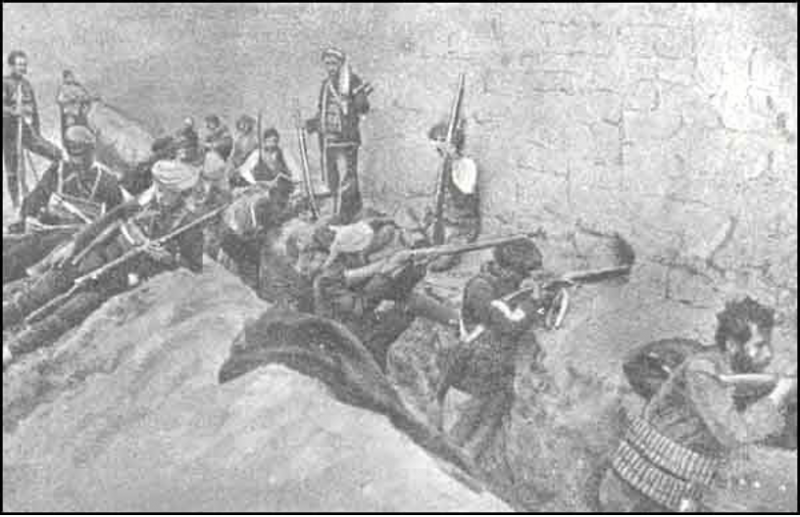 Van'ın Rus ordusu tarafından işgalini kolaylaştırmak için isyan eden Ermeniler'in Osmanlı askerlerine karşı siperlerdeki fotoğrafı.