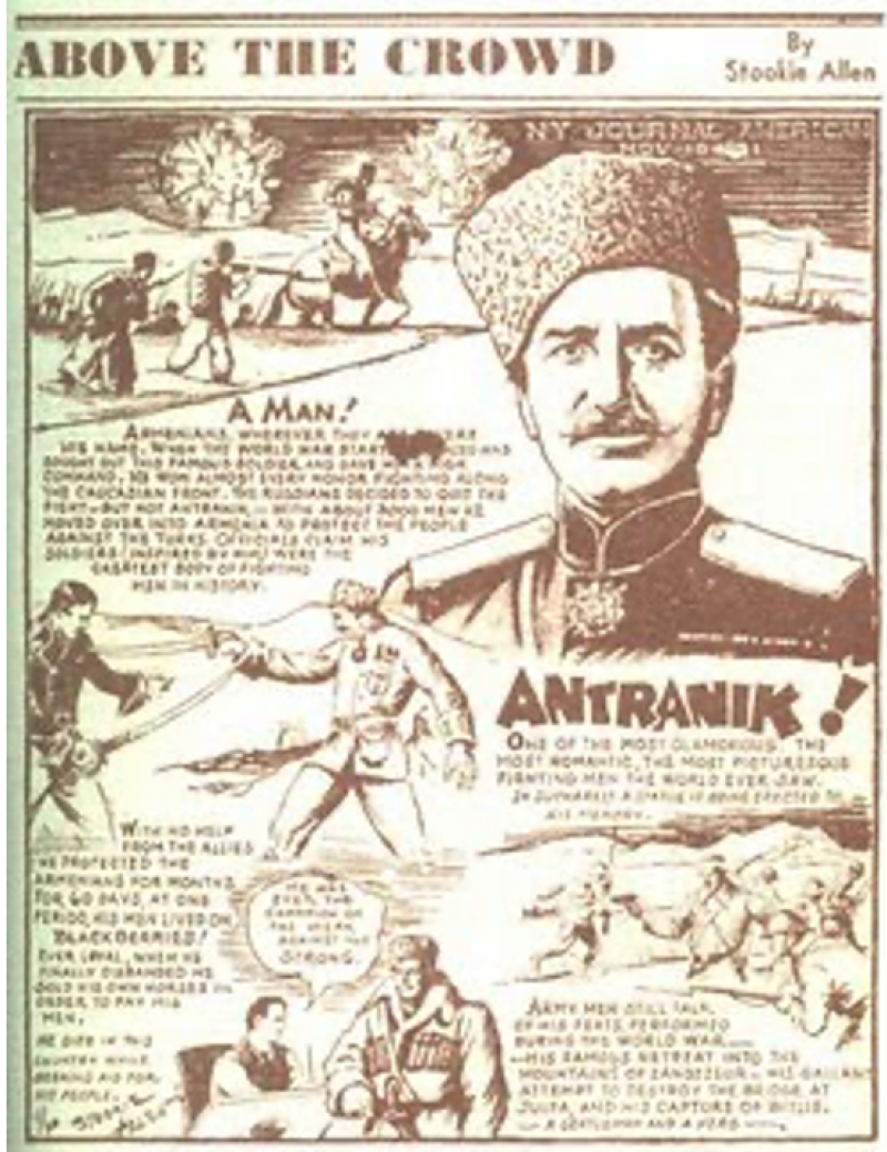 “Batı Ermenistan’da (Kuzeydoğu Anadolu) baş gösteren küçük – büyük her isyana Antranik ve partizanları mutlaka katılmıştır. Antranik öyle bir liderdir ki, yoldaşları onun arkasından en tehlikeli yerlere dahi gitmekten korkmazlar. O Balkanlar’da en iyi savaş uzmanı sayılmaktadır. Ermeniler onu iyi tanır ve sever. O halk şarkılarının kahramanıdır.”