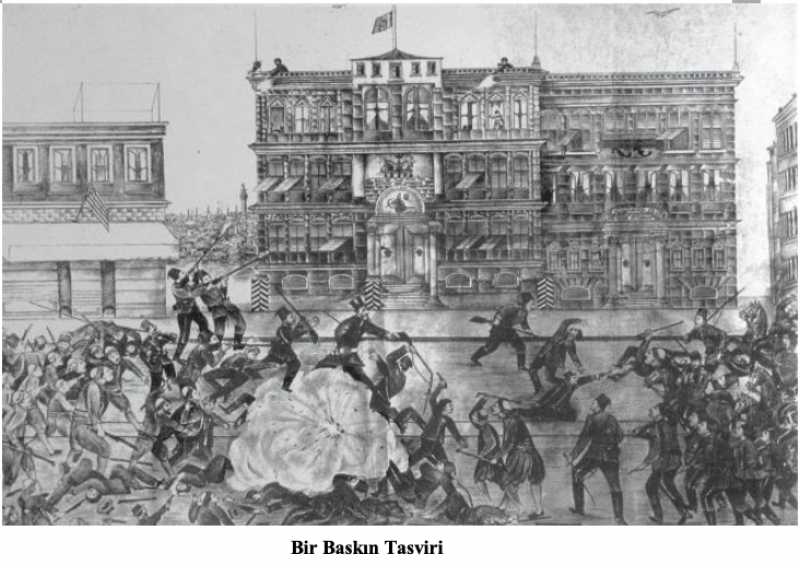 “Paşa hazretleri; Osmanlı Bankası’nı asiler bastı. Kapıda nöbet bekleyen jandarmayı katletmişler. Evvelce oraya birçok mühimmat, silah ve humbara saklamışlarmış. Bugün sabahtan beri, hepsi hasır şapkalı olmak üzere, dikkat çekmemek için birer, ikişer bankaya girmişler. Tahkikata nazaran yirmi üç kişi imişler. Kapıdaki jandarmanın şehit edildiğini haber alınca hemen oraya asker, jandarma ve polis devriyeleri sevk edildi. Beyoğlu Mutasarrıfı bizzat geldi. Fakat bankanın kapısını komiteciler tutmuştu. Devriye üzerine humbara attılar; jandarma mülazımı Mehmet Ağa, Çavuş Hasan, nefer İsmail ve Tanaş isminde bir Rum öldü. Salih onbaşı ile iki jandarma, beş polis, iki Rum, iki Musevi ağır surette yaralandılar. İş bahanesiyle bankaya giren birçok Türkler de katl ve cerh edilmiş. Komiteciler, aynı zamanda Voyvoda caddesindeki bütün yabancı evlerine dolmuşlar; gelip geçenin üzerine humbara ve silah yağdırıyorlar. Yanaşmak mümkün değil, seyirci kaldık, şaşırdık. Ne yapacağız”.