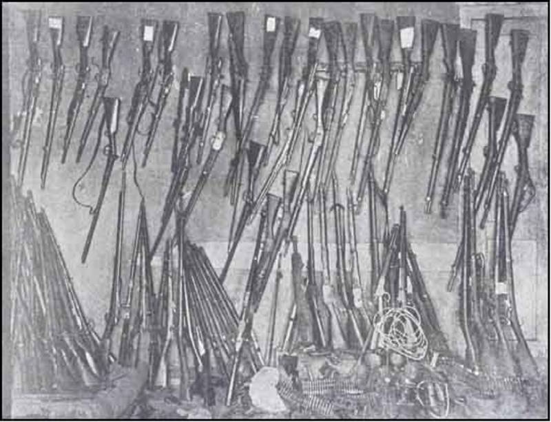 Haçin'de (Saimbeyli), Ermenilerden ele geçirilen silahlardan bir kısmı